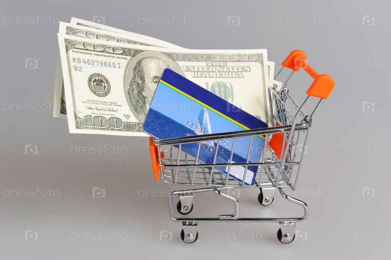Кредитная карта и деньги в корзине