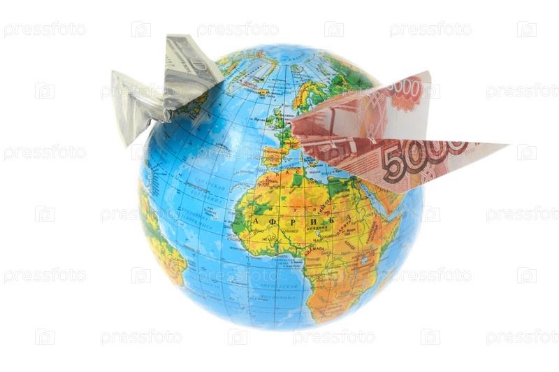 Глобус с самолетиками из денег