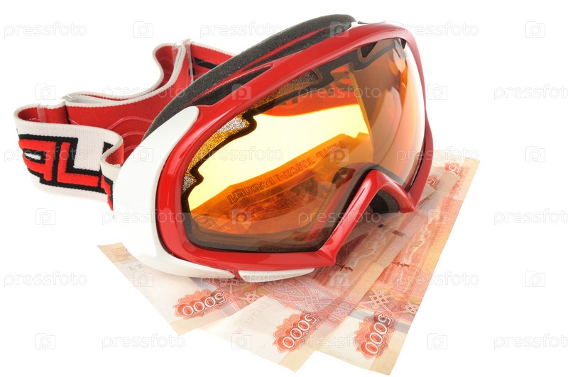 Лыжная маска и деньги на белом фоне
