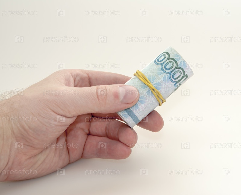 Рука подает деньги, перетянутые резинкой