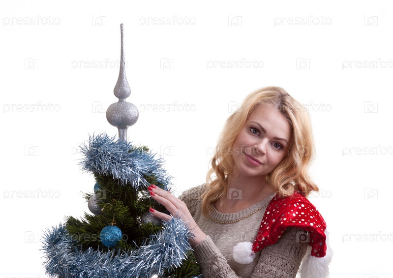 Девушка украшает Новогоднюю елку