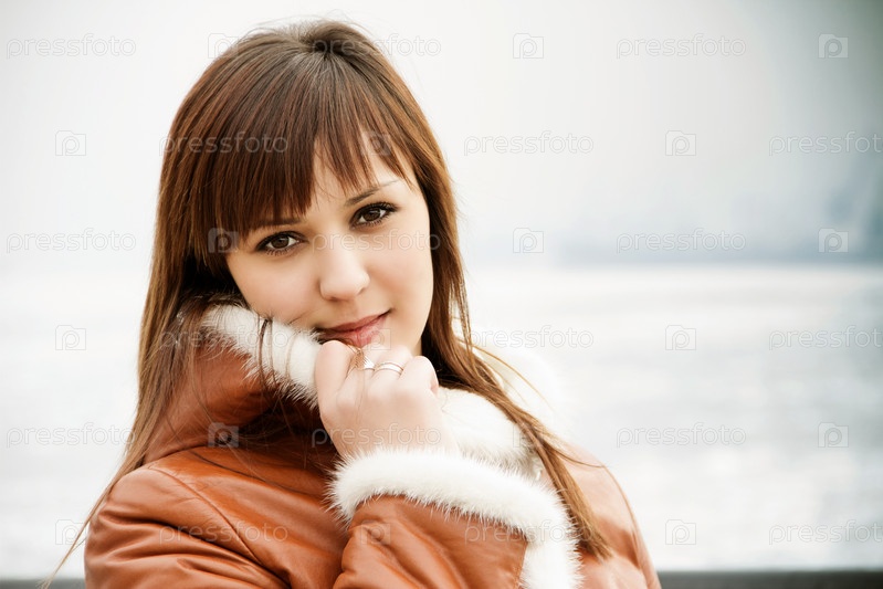 Красивая кареглазая девушка в куртке зимой на улице