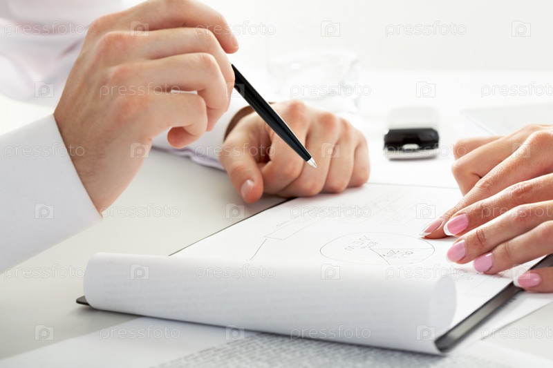 Руки молодых специалистов при обсуждении финансового плана