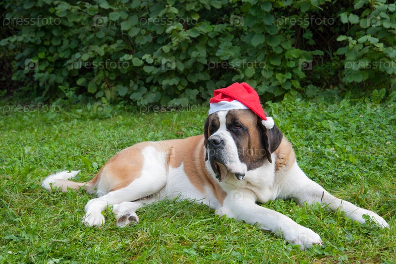 Сенбернар в колпаке Санты