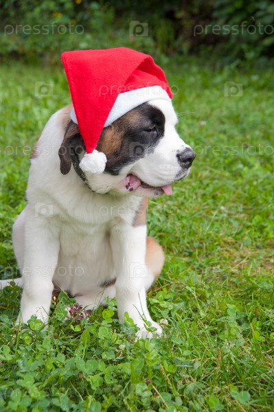 Сенбернар в колпаке Санты