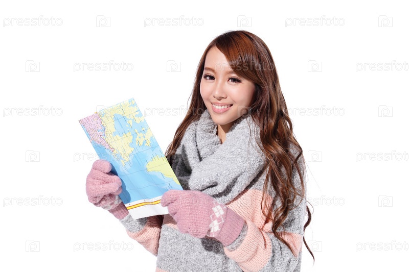 Счастливая женщина с картой