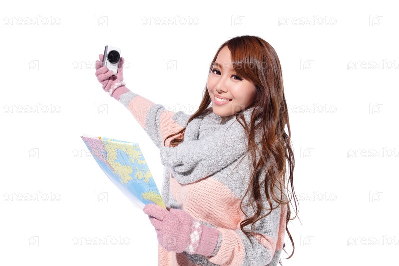 Счастливая женщина с картой
