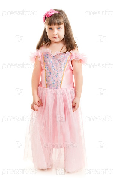 Девочка в розовом платье на белом фоне