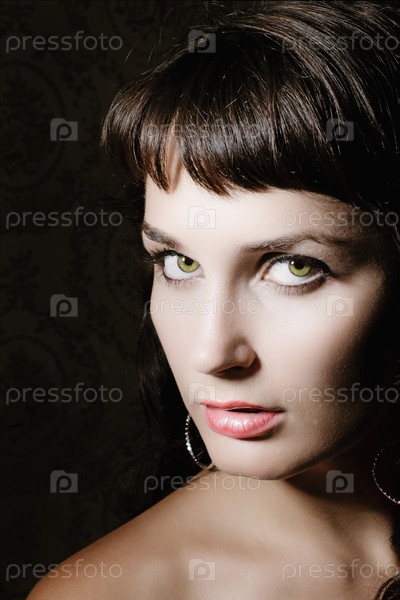 Портрет молодой брюнетки с зелеными глазами
