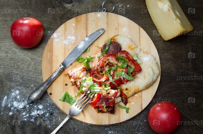 Кусок пиццы на деревянной доске