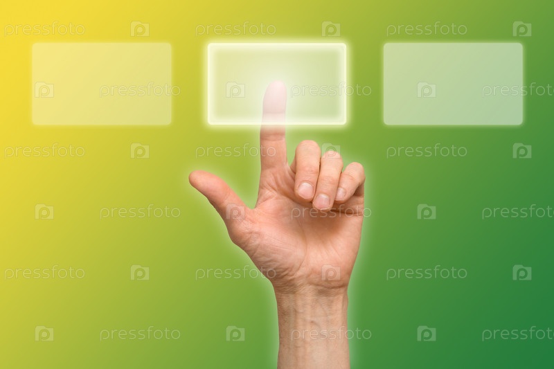 Рука нажимает на кнопку виртуального интерфейса