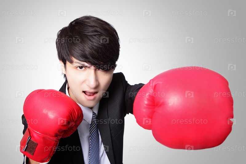 Деловой человек в боксерских перчатках