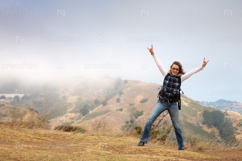 Счастливая молодая девушка на вершине Северной Калифорнии в США