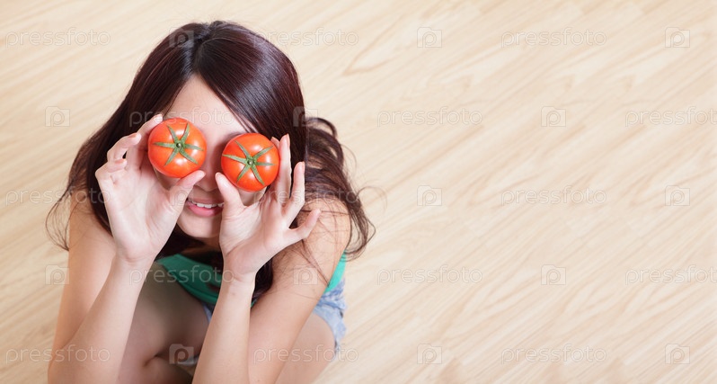 Девушка с помидорами в руках