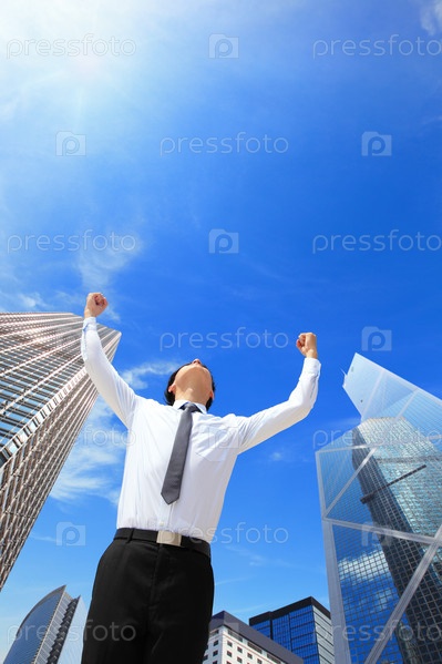 Счастливый деловой мужчина на фоне неба