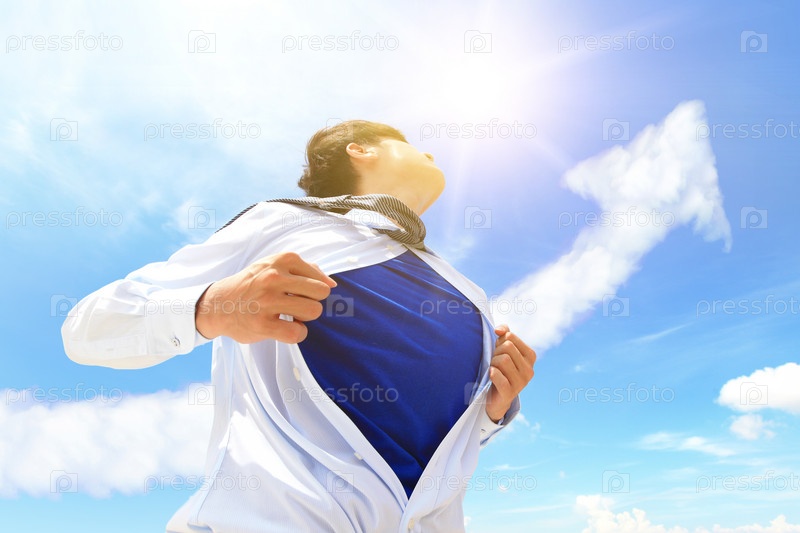 Бизнесмен в костюме супергероя под костюмом
