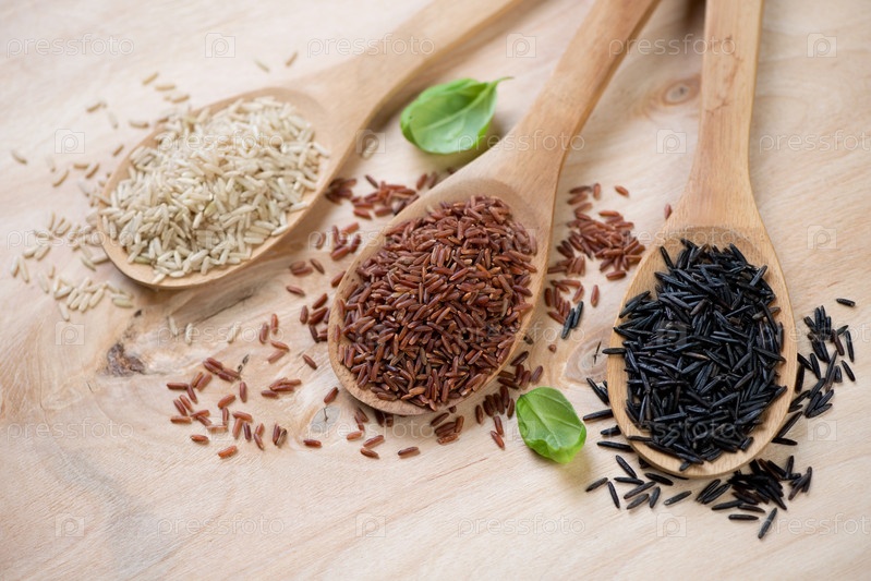 Коричневый, красный и черный рис крупным планом