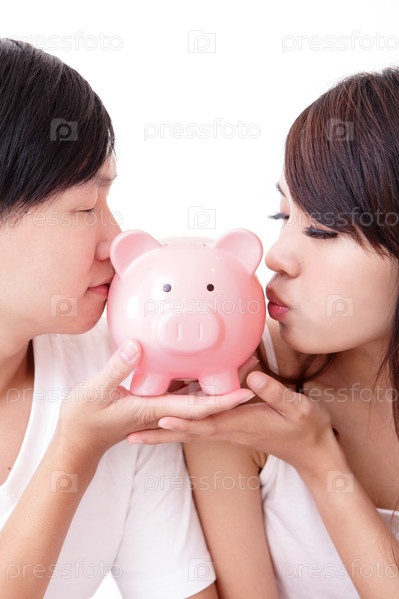 Счастливая пара с копилкой