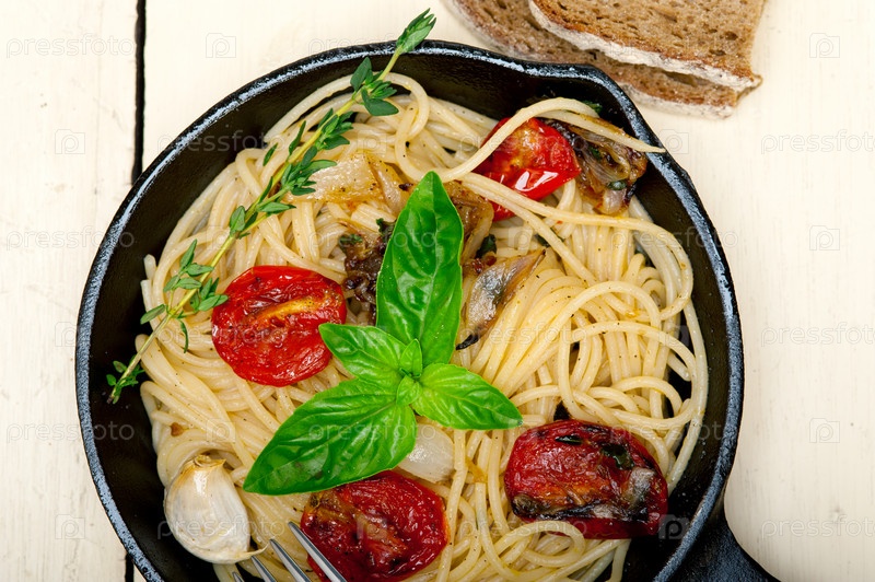 Спагетти с запеченными помидорами