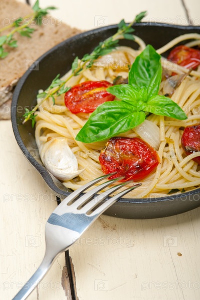 Спагетти с запеченными помидорами