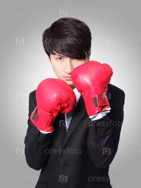 Деловой мужчина в боксерских перчатках