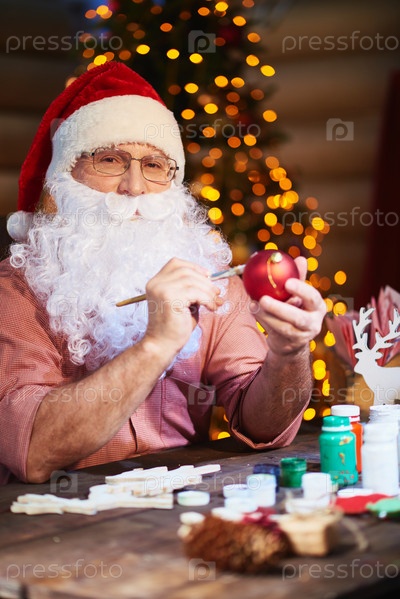 Санта-Клаус делает рождественские украшения