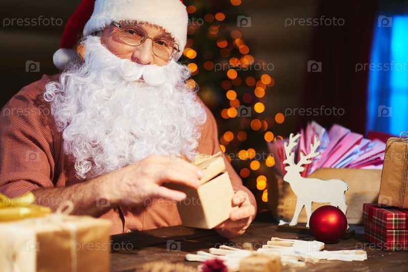 Санта готовит рождественские подарки
