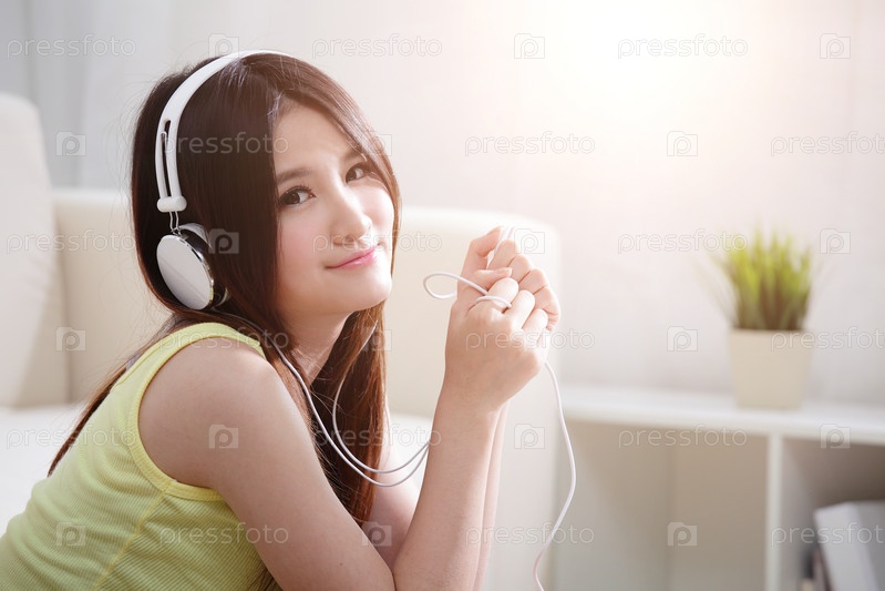 Молодая женщина наслаждается музыкой