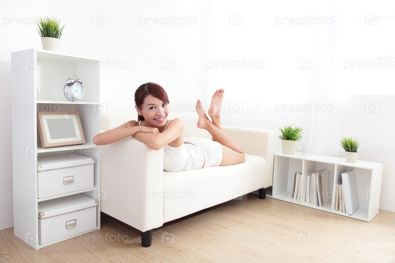 Девушка лежит на диване
