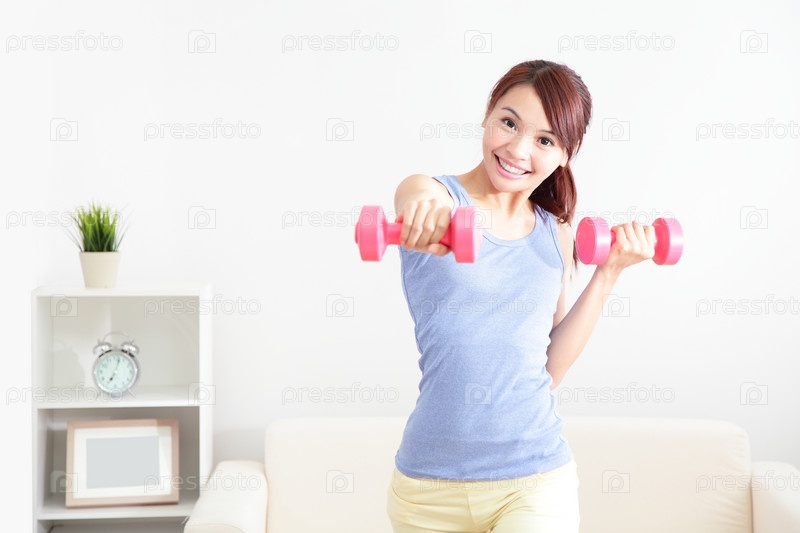 Женщина с гантелями