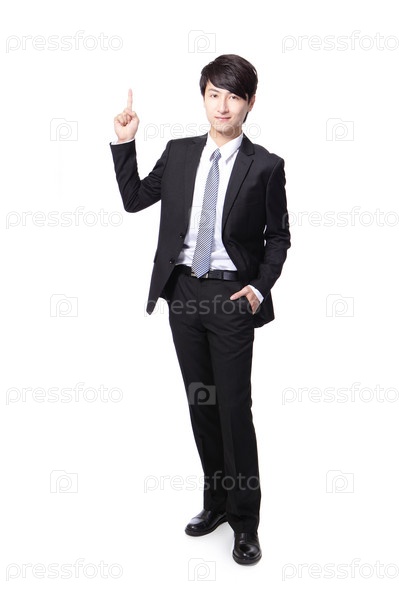 Бизнесмен указывает на фон