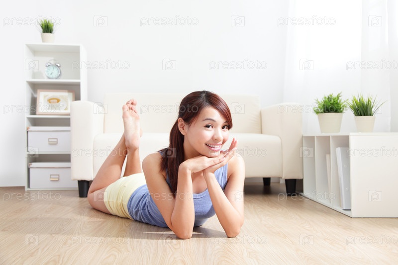 Молодая женщина лежит на полу