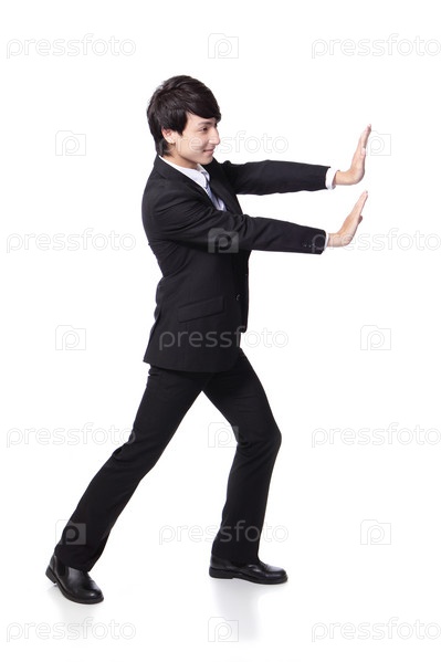 Деловой человек толкает препятствие