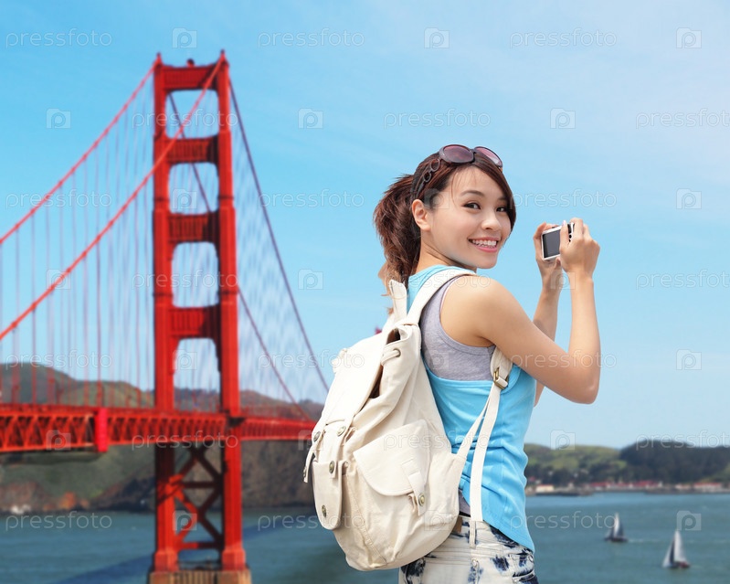 Счастливая женщина в Сан-Франциско