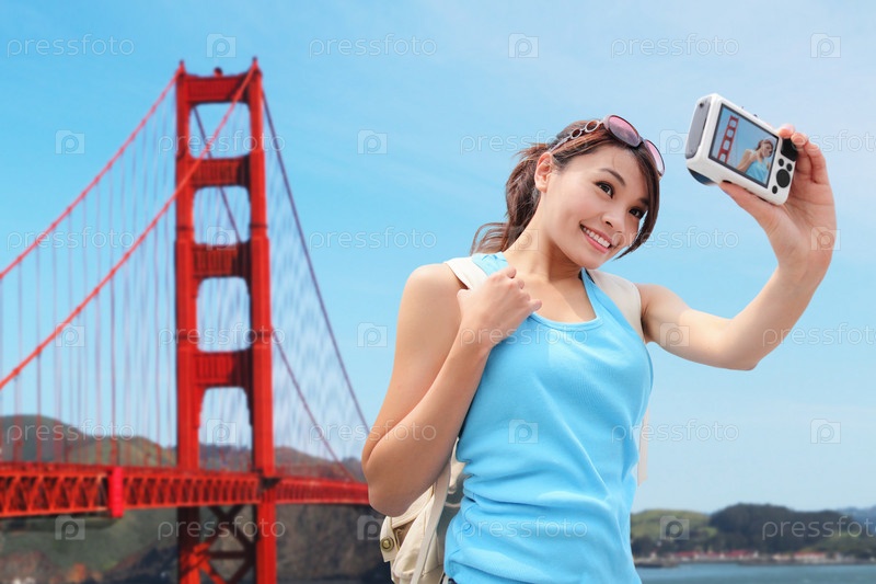 Счастливая женщина в Сан-Франциско