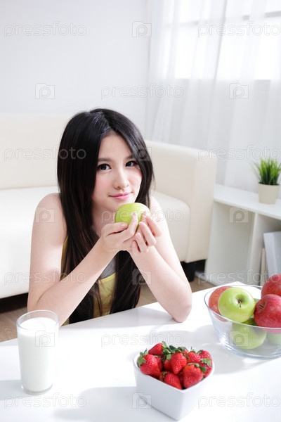 Женщина с молоком и фруктами