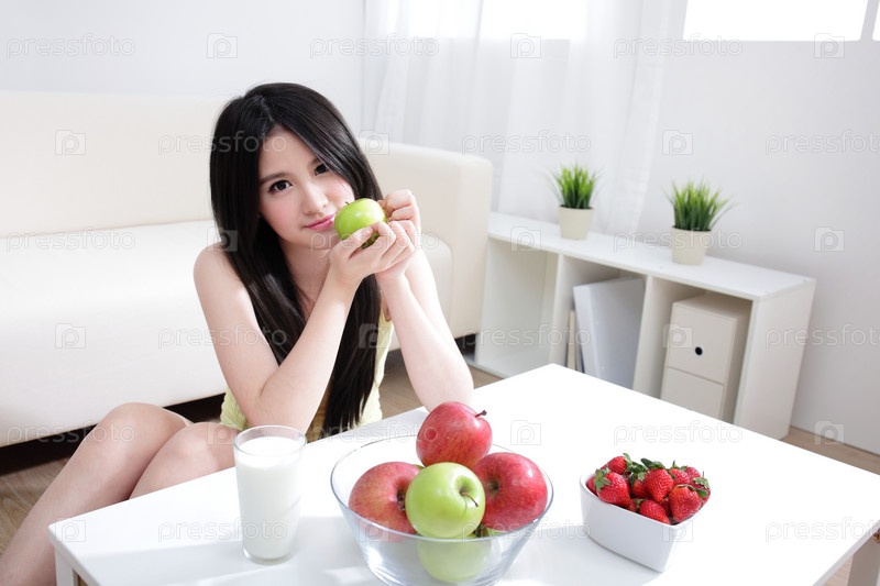 Женщина с молоком и фруктами