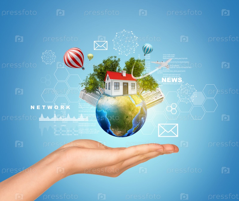 Рука держит Землю с домом