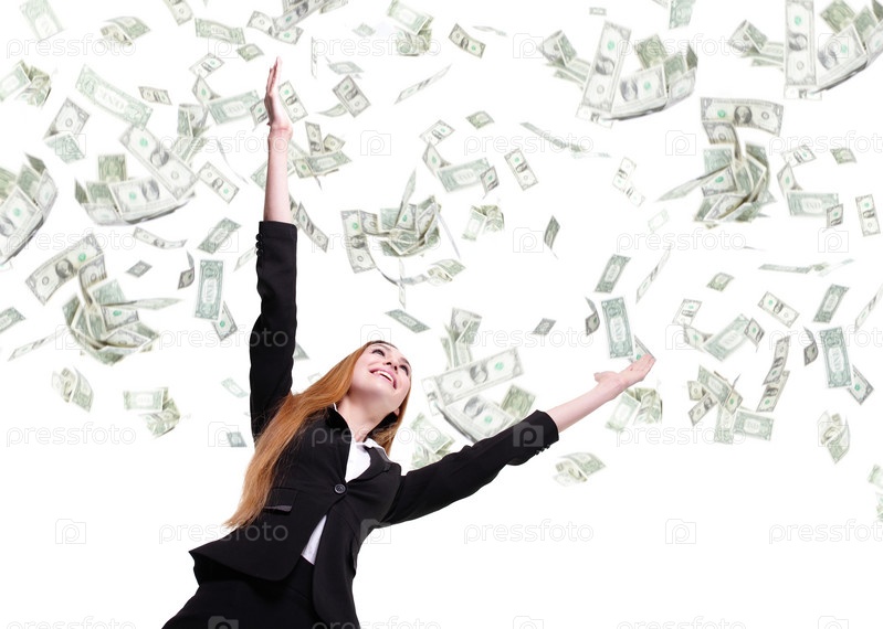 Женщина, осыпанная деньгами