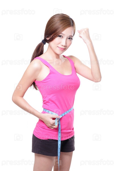 Женщина измеряет талию