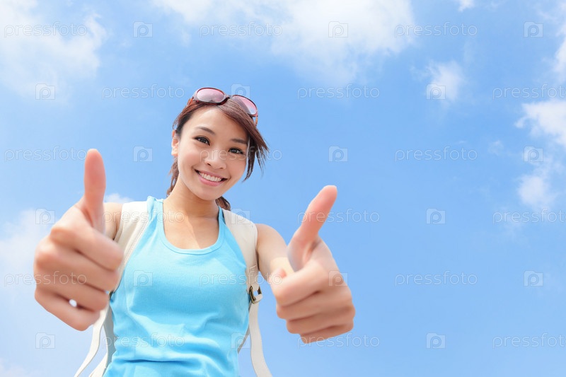 Турист показывает большие пальцы