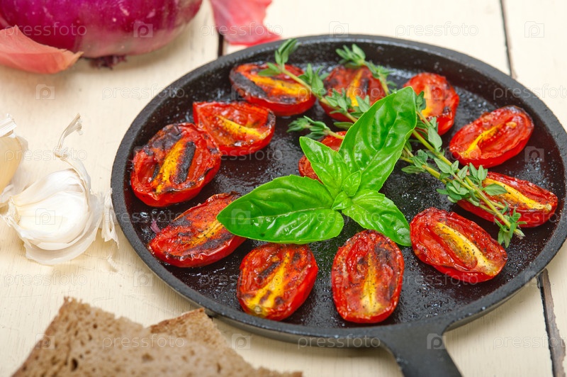 Запеченные помидоры черри с базиликом и тимьяном