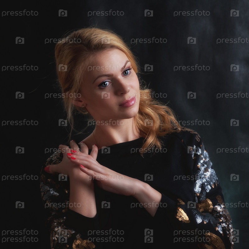 Портрет блондинки на черном фоне