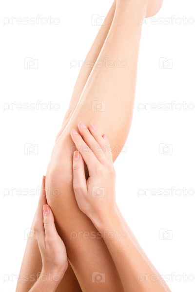 Женские ноги на белом фоне