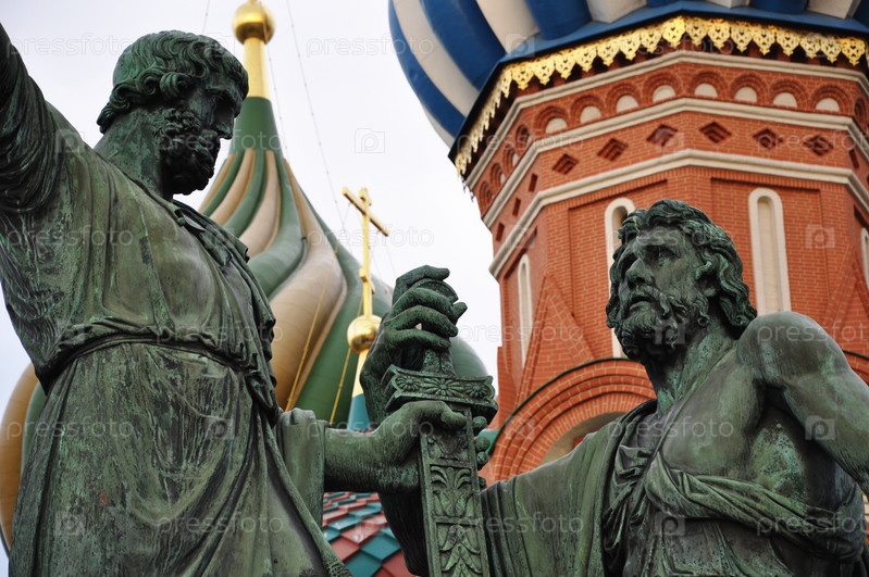Памятник Минину и Пожарскому. Храм Василия Блаженного. Красная площадь. Москва, Россия