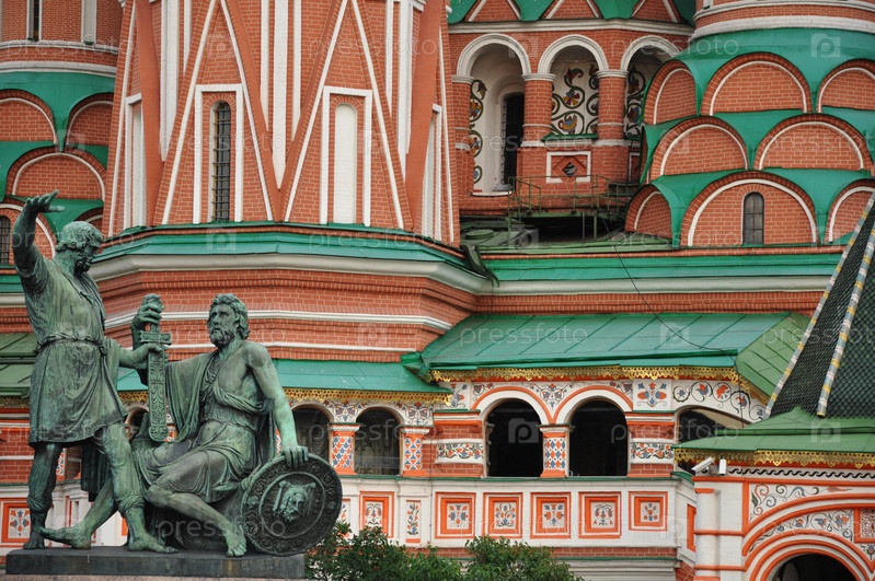 Памятник Минину и Пожарскому. Храм Василия Блаженного. Красная площадь. Москва, Россия