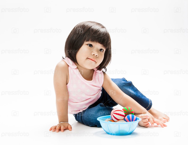Маленькая азиатская девочка на светлом фоне