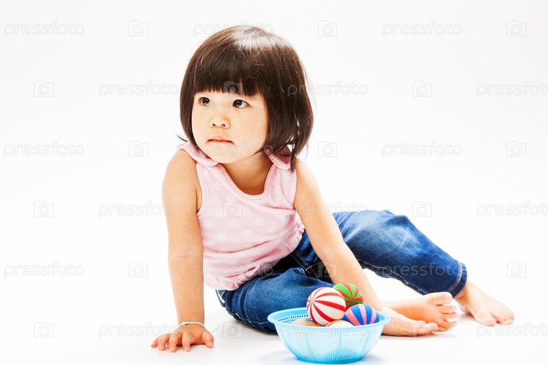 Маленькая азиатская девочка на светлом фоне