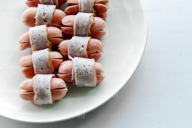 Сосиски, завернутые в вареное сало