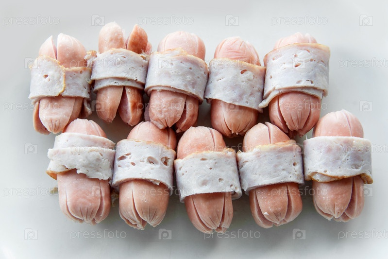 Сосиски, завернутые в вареное сало